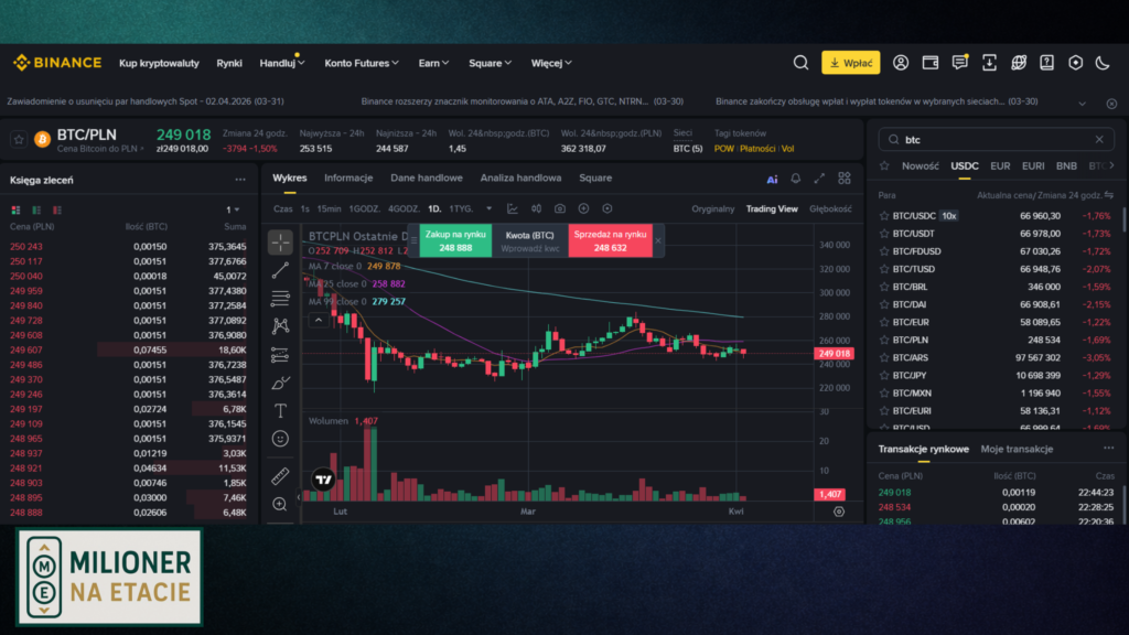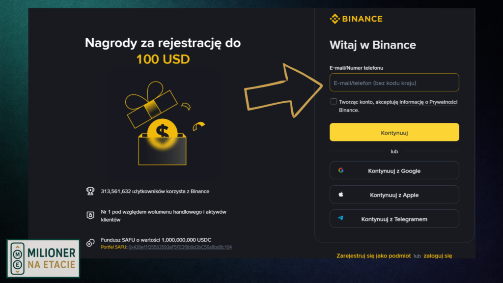 W tym tutorialu korzystamy z Binance. To największa giełda kryptowalut na świecie, obsługuje złotówki i jest dostępna po polsku.