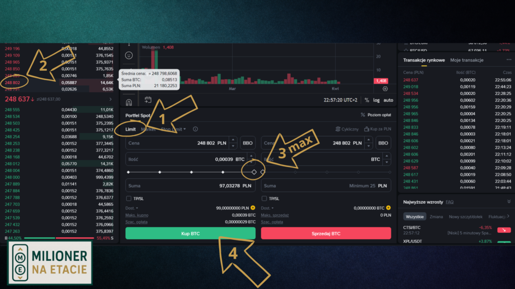 Widzisz zakładki: Limit, Market, Stop Limit. Wybieramy Limit. Dlaczego nie Market?