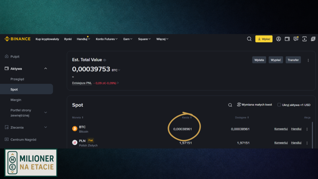 Gotowe. Wchodzisz w portfel Spot i widzisz swoje BTC.