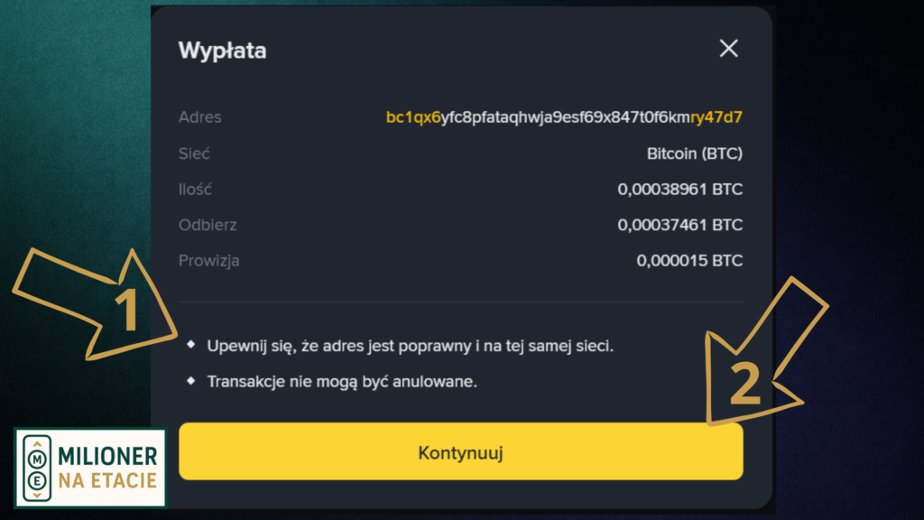 Ważne: sprawdź adres dwa razy. Przelew krypto jest nieodwracalny. Jeśli wyślesz na zły adres, nikt Ci tego nie zwróci.