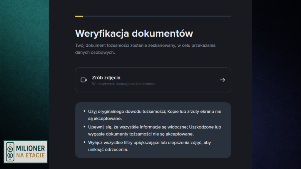 Następnie robisz zdjęcie dokumentu (przód i tył) oraz selfie. Trwa to dosłownie minutę.