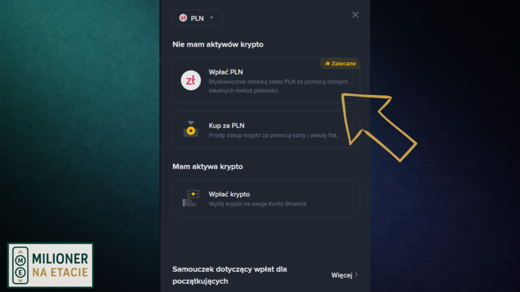 Klikasz „Wpłać” i wybierasz „Wpłać PLN”.